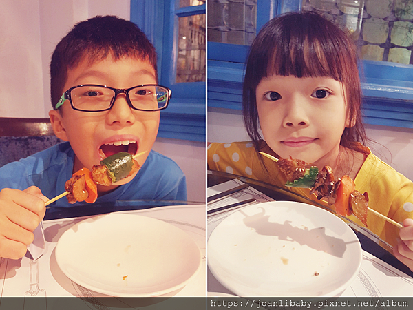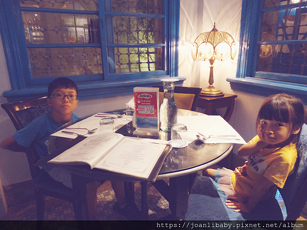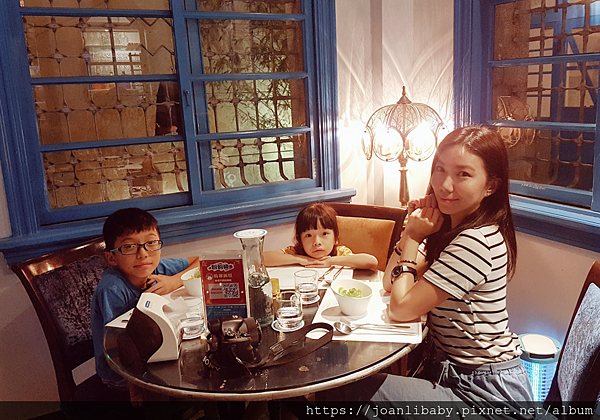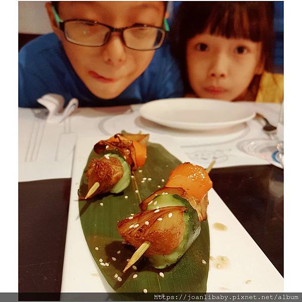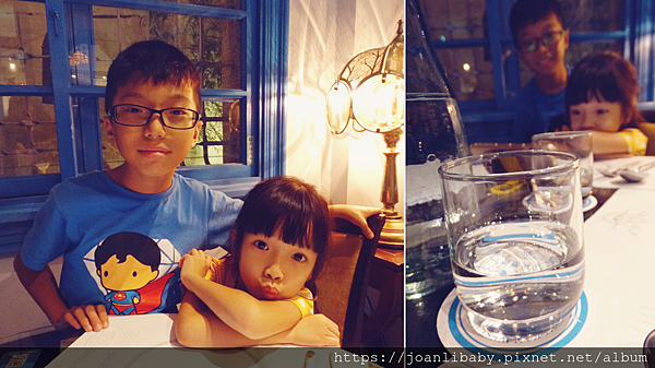 在服務員的帶領下,我們一大兩小也準備坐好,喝口水漱漱口期待上菜囉!