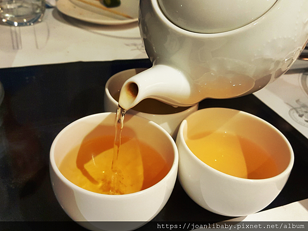 服務員端上了一壺沏好的熱茶,口感潤舌溫喉,讓品嚐多道美食的口腹稍稍柔和,