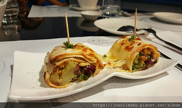 酥酥脆脆的餅皮搭上層層鮮蔬內餡,一入口的起司鹹味奶香竄流舌尖,
