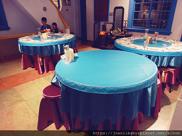 赤崁璽樓的餐桌都是大圓桌,除了包廂內餐桌有長方形的以外;