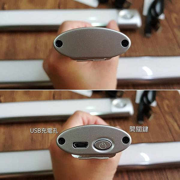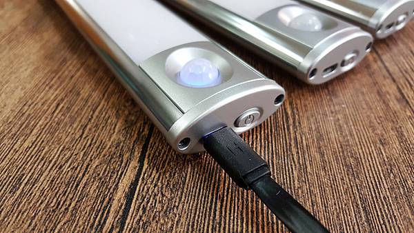 感應燈的左右兩邊長這樣,其中一邊就是USB充電孔+開關鍵