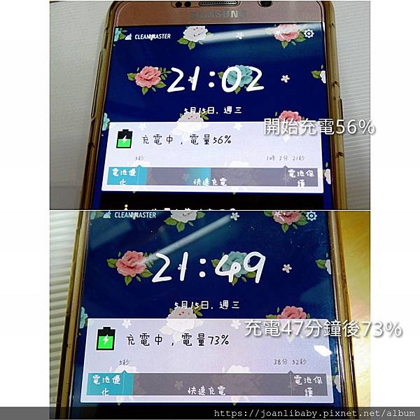 準備充電時56%,經過47分鐘後充到73%,上升了23%