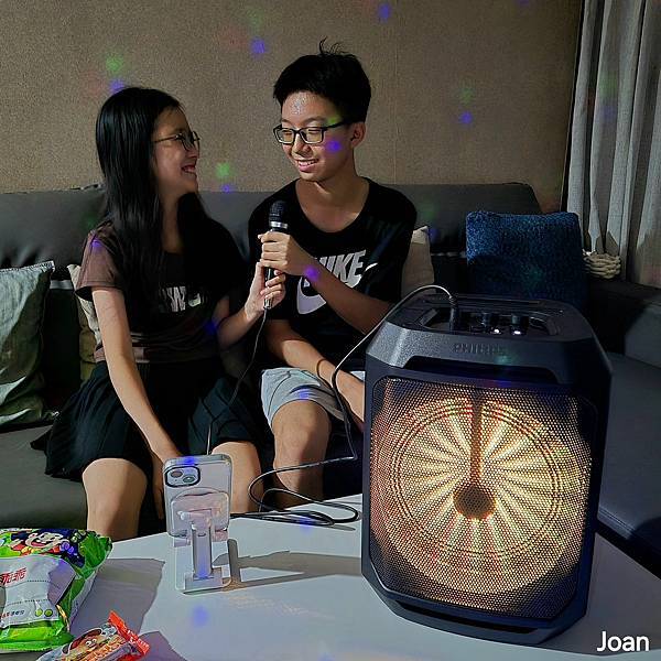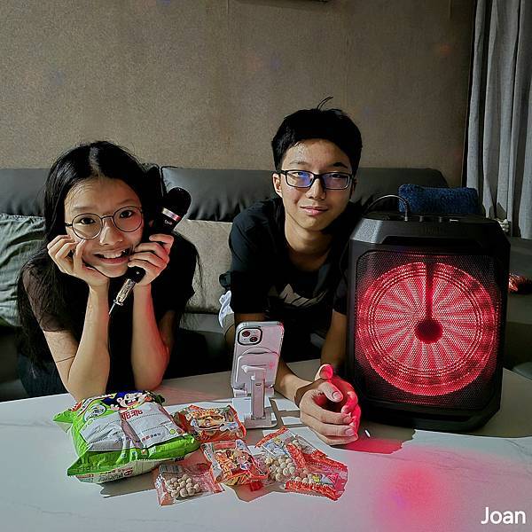 除了音質優秀以外,搭配不同的照明炫光營造出開趴感,就算只有兩寶開唱也很熱鬧!