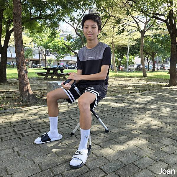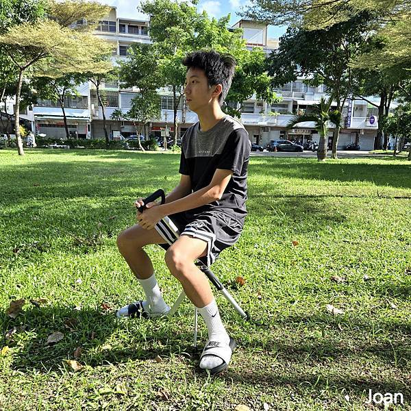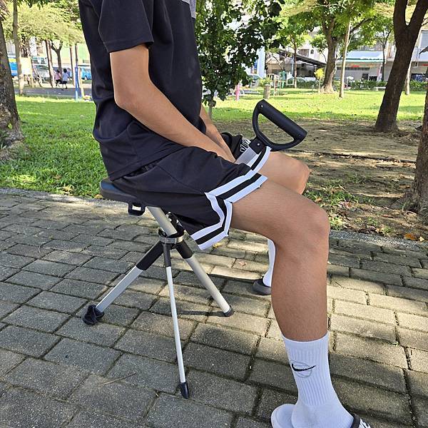 手拿著走很穩,當摺疊椅舒適穩固、不搖不晃,強化鋼圈結構跟止滑腳墊果然夠給力!