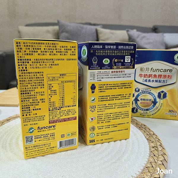 船井高成長®牛奶鈣魚膠原粉 外盒都有標示相關產品資訊,開封前都可以詳閱參考~