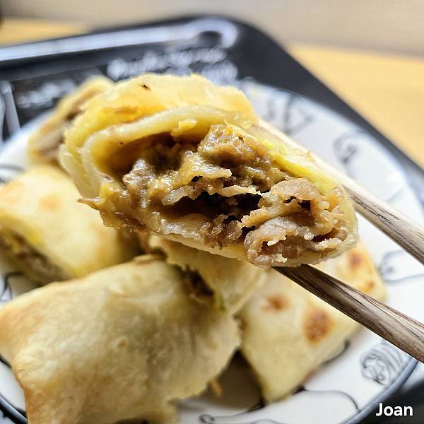 氣炸後的香氣更是隨著加熱散發出來,燒肉的鹹香與蛋餅皮Q彈結合,只能說好吃!